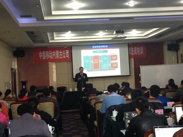 2013年11月20日,经北洋咨询集团安排,刘营律师为中国移动通信集团公司内蒙古公司提供了“招标投标法律实务与风险防范”主题培训。培训深入浅出、生动有趣的阐述了招标投标实务操作中的方法、技巧,以及招标人需要予以关注的大量潜在风险点,针对一些潜在风险问题,刘营律师结合自身实践经验,提出了一些切实可行的防范措施,供公司参考备用。培训活动结束前,刘营律师还就大家关心的疑难问题进行详细讲解,得到公司领导及参会人员的一致好评。公司领导表示,将推荐刘营律师到公司系统更高层级的培训课堂讲授招标投标实务课程,对于实践工作中的疑难问题,还会继续请教刘营律师,刘营律师对公司领导的认可表示感谢,承诺将尽己所能为公司发展提供法律支持和帮助。